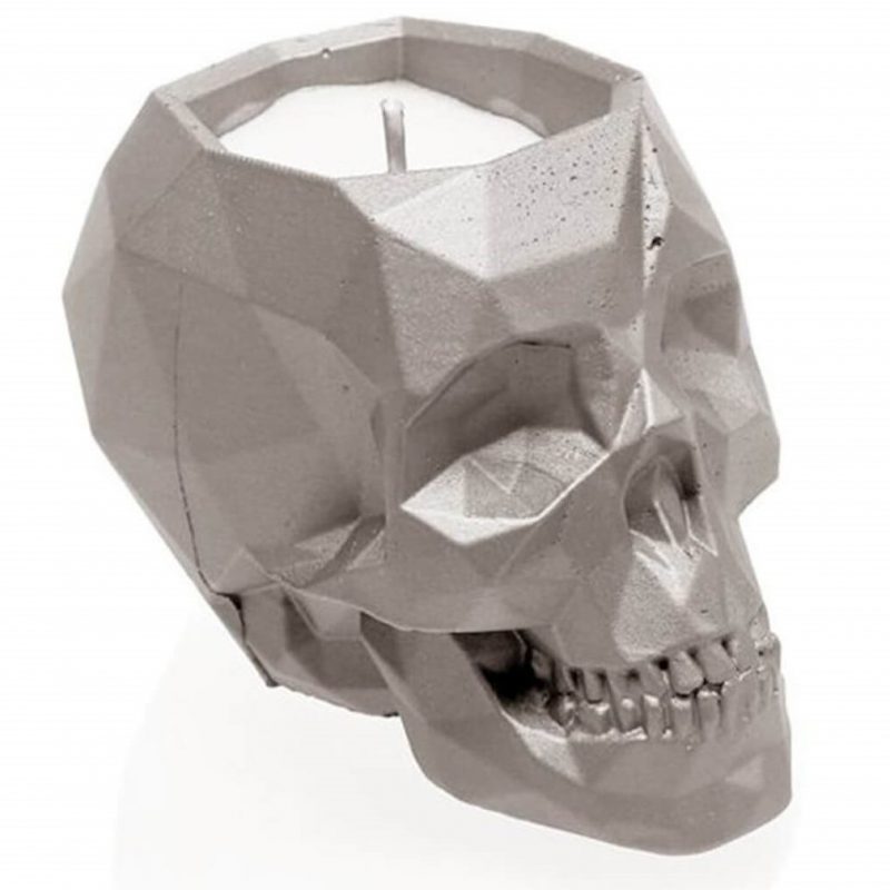 Candle Concrete Skull Black Metallic Gingerbread