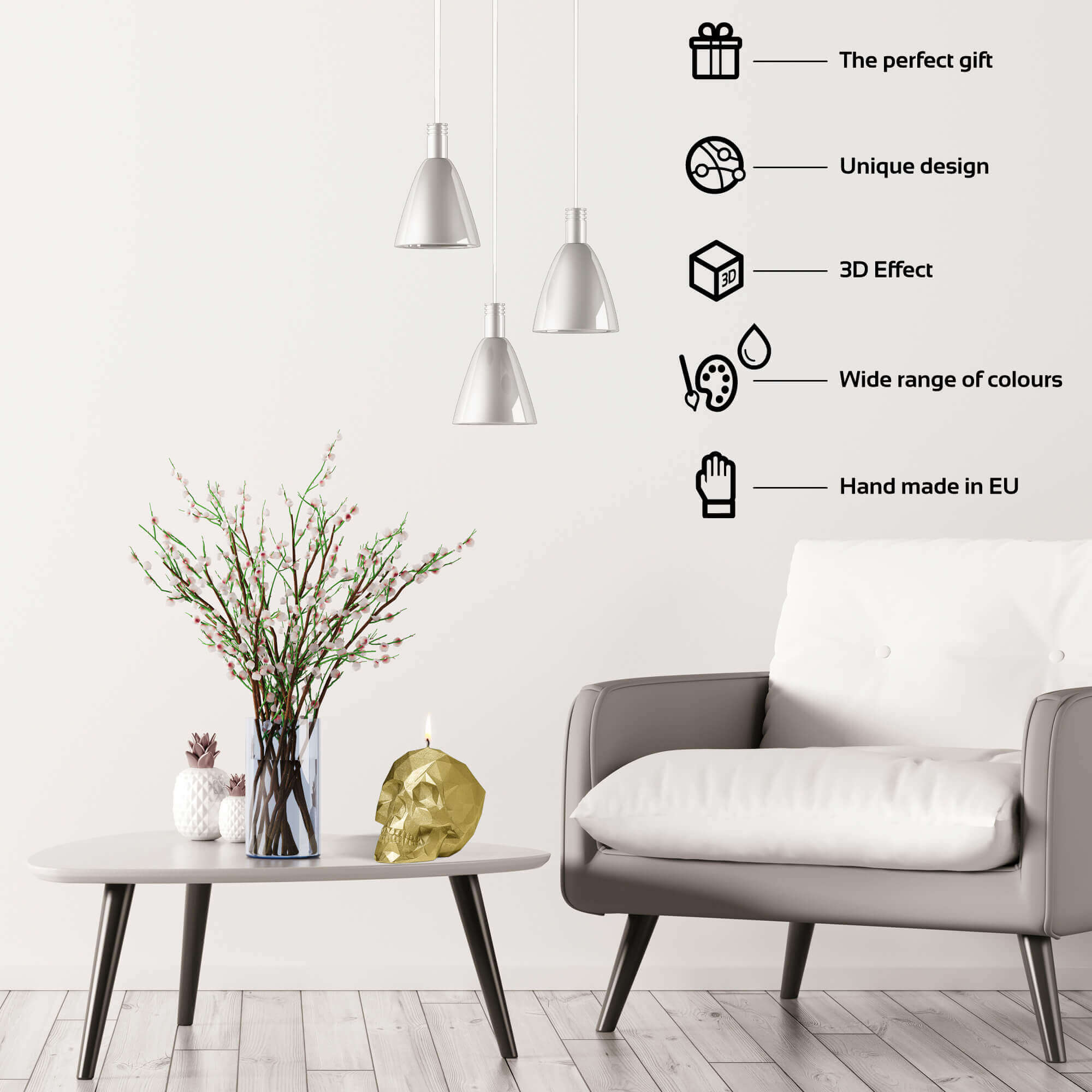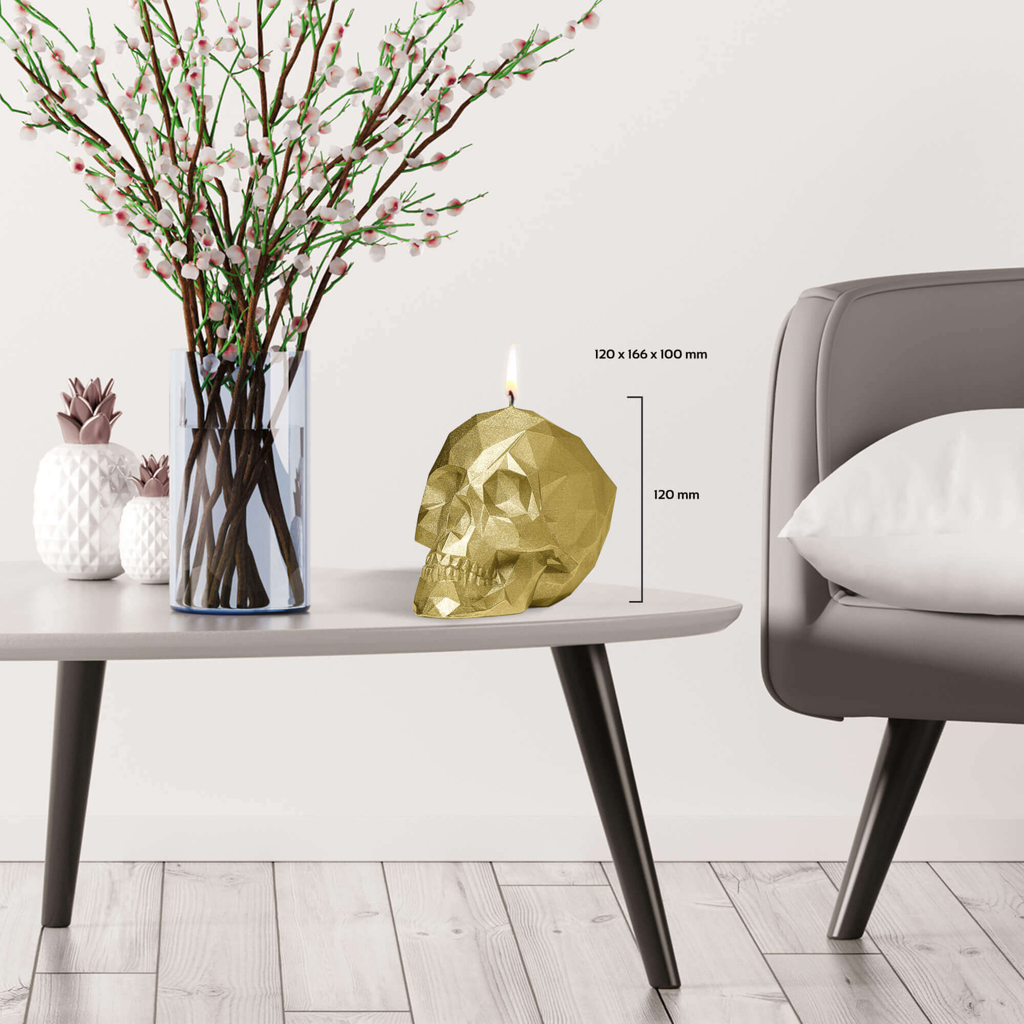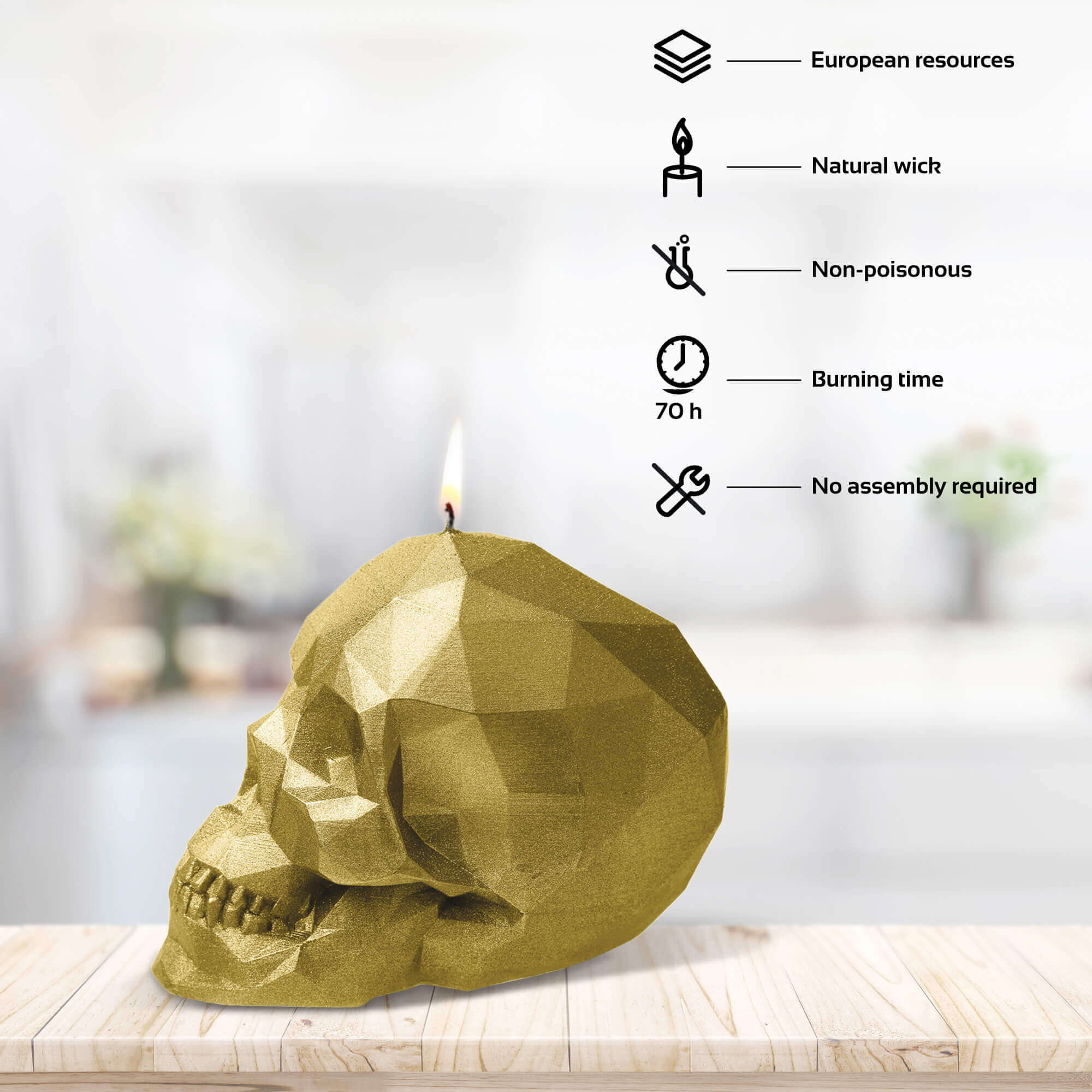 • Candle Skull Low Poly Gold is made with natural, non-toxic materials.