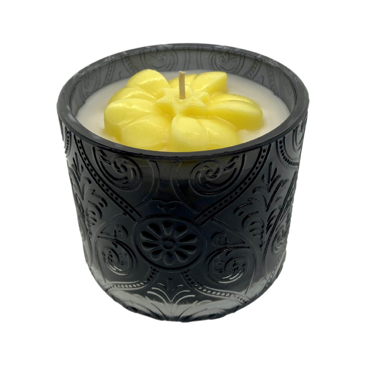 Floral Candle with Yellow Flower – Black Jar