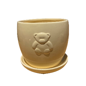 Yellow Round Jar with Bear Design