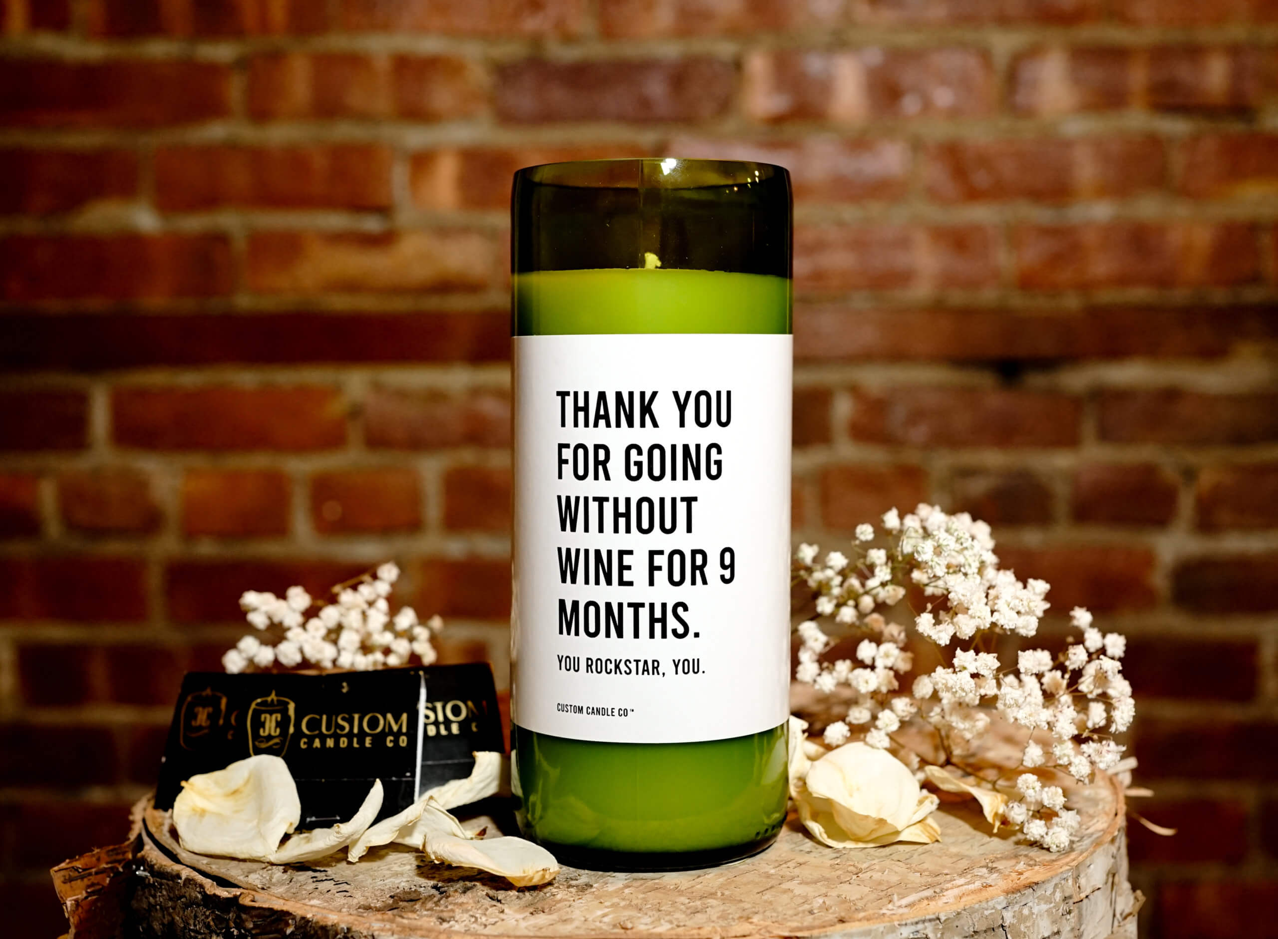 Custom Candle Co™ “Thanks for Going Without Wine for 9 Months” Quote Candle
