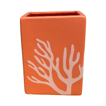 Orange Rectangular Pot with White Lines